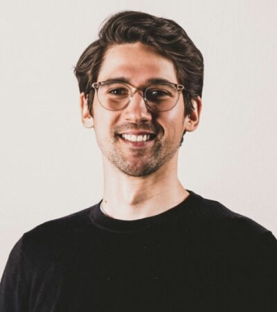 A row of air conditioning units is installed on the rooftop of a building. A person, wearing a hat, is working on one of the units. The building has several ventilators and metal ducts extending from it. The sky is clear and blue.